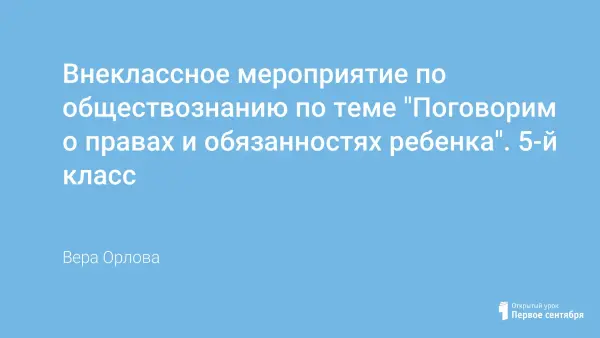 Мероприятие может служить логическим продолжением урока обществознания в 5-м классе «Семья и семейные отношения, проводится в коллективной, групповой и парной работе, в процессе которой идет работа над статьями из различных документов, в которых говорится о правах детей. В процессе разговора об обязанностях ребенка активно привлекается субъективный опыт учащихся. На данном мероприятии идет процесс формирования правовой культуры школьников.