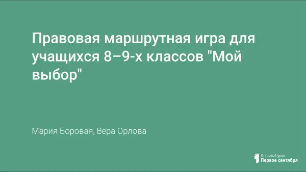 Правовая маршрутная игра для учащихся 8–9-х классов "Мой выбор"