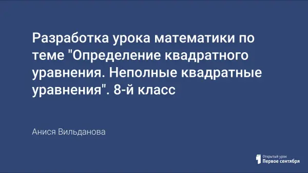 Цели урока: учащиеся умеют определять по внешнему виду уравнения, является ли оно квадратным или нет; умеют определять значения коэффициентов a, b и c; умеют отличать полные квадратные уравнения от неполных; умеют определять тип неполного квадратного уравнения и выбирать алгоритм его решения; умеют решать неполные квадратные уравнения; умеют проводить классификацию уравнений по общему виду; умеют выделять общее и находить различия; умеют ставить цели урока и определять достигнуты ли они.