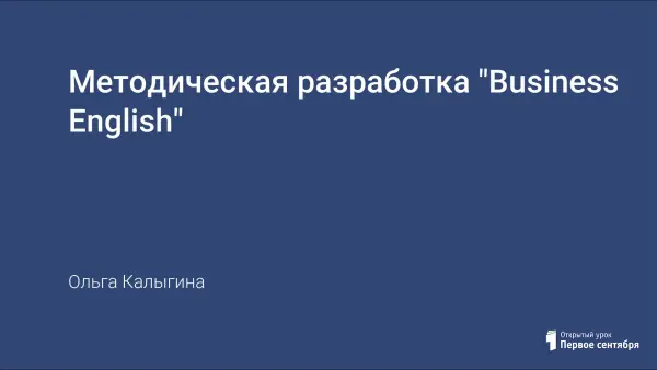 Методическая разработка Business English представляет собой курс внеурочной деятельности по английскому языку. Цель освоения данного курса состоит в формировании иноязычной коммуникативной компетенции в устной и письменной формах в ситуациях межкультурного делового общения. Предлагаемый курс Business English окажет помощь учащимся в овладении основами делового общения в типичных ситуациях, поможет пополнить словарный запас, улучшить навыки разговорной речи и чтения, получить новые знания по предмету английский язык. Курс предназначен для учащихся 9-х классов общеобразовательных школ, рассчитан на 18 часов.