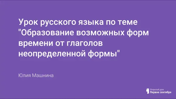 Урок рассчитан на 45 минут и проведён с использованием электронных образовательных ресурсов. На уроке у учащихся формируется умение образовывать временные формы глаголов, от глаголов в неопределённой форме совершенного и несовершенного вида. На уроке используется технология проблемного диалога, технология развивающего обучения (ведущая роль теоретических знаний).