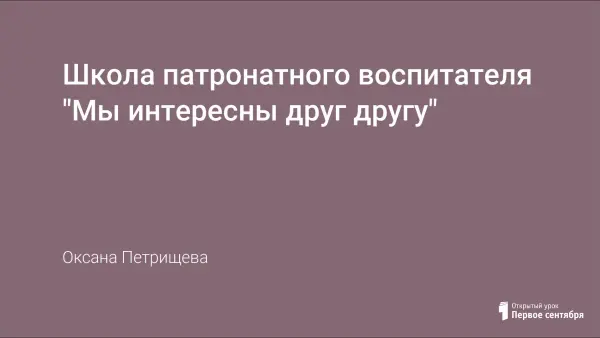 Школа патронатного воспитателя "Мы интересны друг другу"