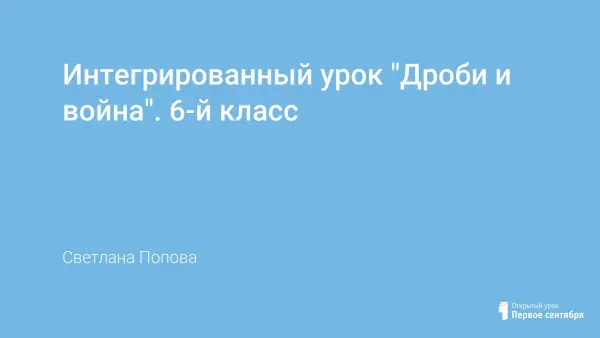 Цель урока: обобщить понятие дробей, их применение при решении задач; показать применение дробей в различных ситуациях во время военных действий; развивать творческое мышление, интерес к предмету.