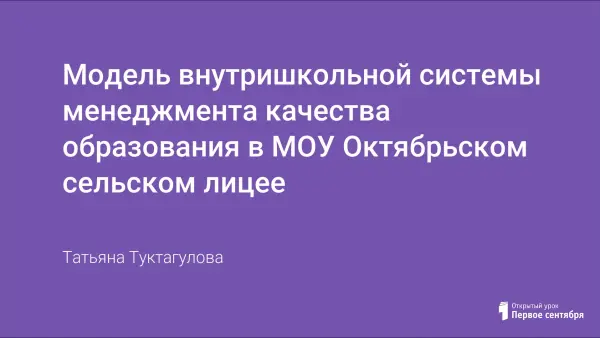 Создание и развитие в образовательном учреждении предлагаемой модели системы менеджмента качества позволит повысить качество образования, что обеспечит повышение конкурентоспособности и устойчивости образовательного учреждения на рынке образовательных услуг, увеличение финансовых показателей и, следовательно, удовлетворенность и уверенность работников образовательного учреждения и заинтересованных сторон.