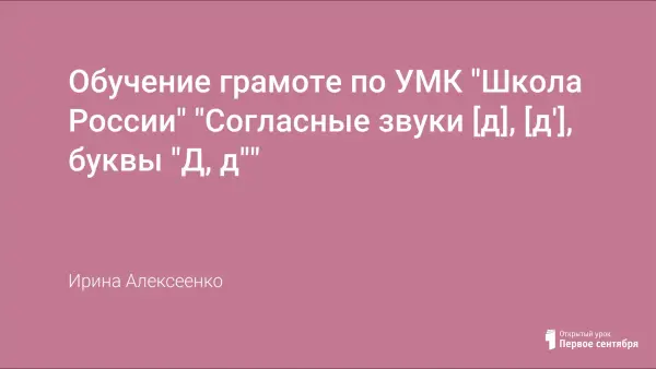 Обучение грамоте по УМК "Школа России" "Согласные звуки [д], [д'], буквы "Д, д""