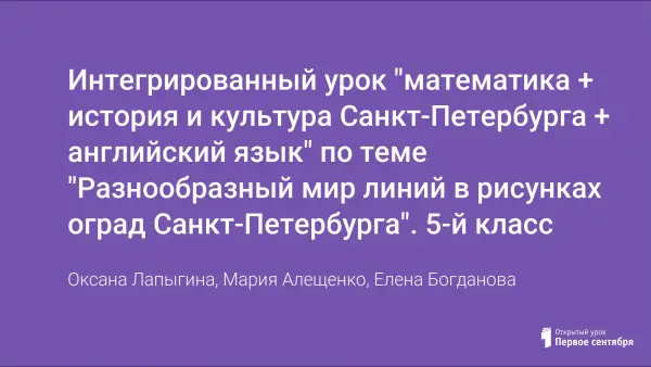 Интегрированный урок показывает учащимся взаимосвязь математики, истории города и английского языка. Расширяет кругозор учащихся, повышает интерес к родному городу и мотивацию к изучению английского языка. На уроке учащимся предлагается побывать в роли архитекторов международного сообщества и создать эскиз рисунка ограды для парка, сквера, моста, или набережной.
