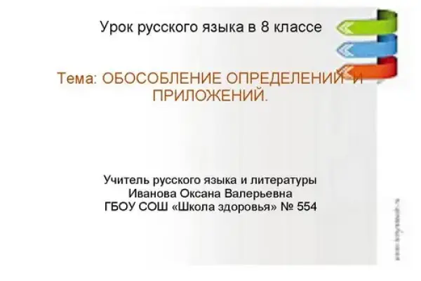 На уроке формируются знания основных правил обособления определений и приложений и умения применять их на письме. Рассматриваются особенности обособления приложений с союзом как. Отрабатываются орфографические, морфологические и синтаксические навыки.