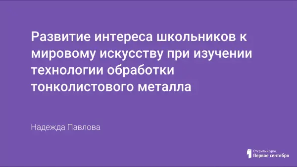 В школе по программе предмета технология в 5-м классе запланировано изучение тонколистового металла, что предполагает знакомство с операциями разметки, резки, правки и гибки тонколистового металла. Для усиления эстетической направленности учебной деятельности можно использовать интеграцию с историей, в курсе которой предполагается ознакомление с различными стилями искусства.