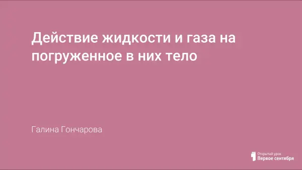 Урок проведен по учебнику Пёрышкина А.В. Глава 3. Раздел «Давление твёрдых тел, жидкостей и газов». Урок физики проводится 21 час в неделю. Урок получения новых знаний через выполнение практической работы. На предыдущих уроках учащиеся были ознакомлены с давлением в жидкости и газе, с атмосферным давлением на различных высотах, а на данном уроке надо познакомиться с действием жидкости и газа на погруженное в них тело.