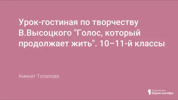 Высоцкий пробовал себя в разных жанрах, он искал для своих "пьес" все новые и новые краски. Дверь в его творческую лабораторию была всегда распахнута. Много песен написал Высоцкий для детских фильмов. Дети, общаясь со взрослыми, быстро распознают, кто из взрослых с ними на равных, а кто только " прикидывается ребенком". В силу своего возраста учащиеся старших классов хорошо воспринимают творчество Владимира Высоцкого.