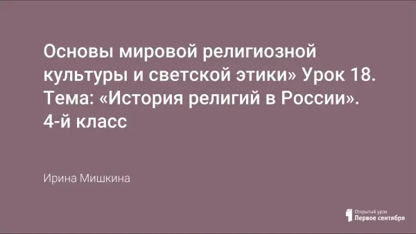 Цель урока: знакомство учащихся с особенностями истории различных религий в России; познакомить учащихся с основными этапами возникновения и развития православия и других религий в России; раскрыть учащимся ключевые понятия урока.