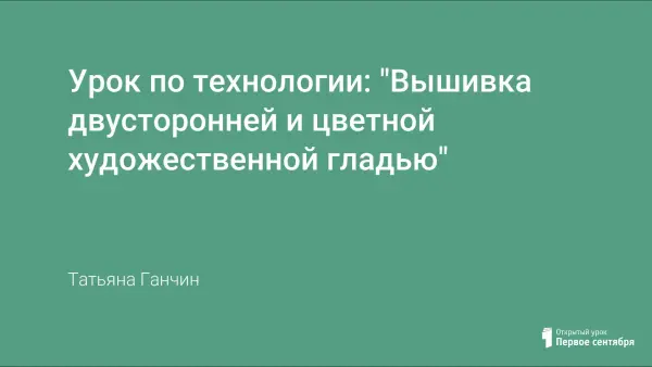 Цель урока: ознакомиться с историей возникновения вышивания, основными приемами вышивания двусторонней и цветной художественной гладью.