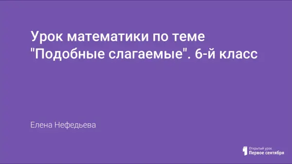 Урок изучения нового материала, на котором вводится понятие «подобные слагаемые». Урок содержит различные виды упражнений, направленных на формирование навыка приведения подобных слагаемых.