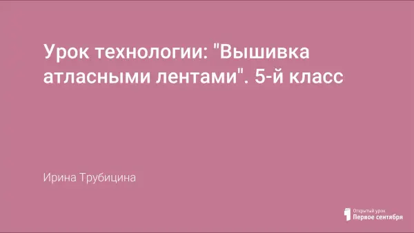 Вышивка атласными лентами позволяет прививать интерес к декоративно-прикладному искусству. Привлечение девочек к художественной обработке текстильных материалов, способствует повышению интереса к изучению предмета «Технология», развитию чувства прекрасного и творческий потенциал.