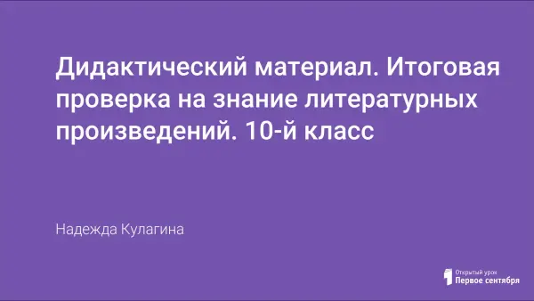 Представлены материалы к итоговой проверке по литературе в 10-м классе на знание литературных произведений.