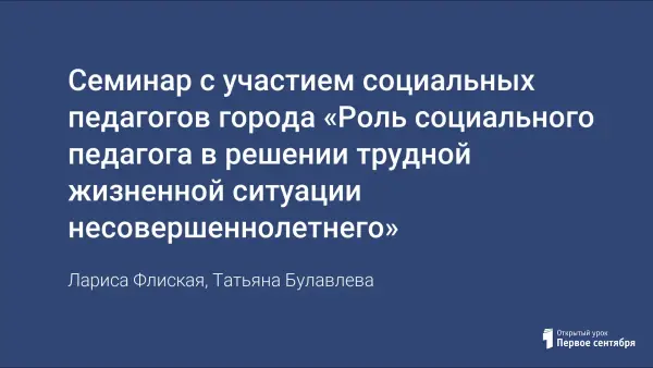 Семинар с участием социальных педагогов города «Роль социального педагога в решении трудной жизненной ситуации несовершеннолетнего»