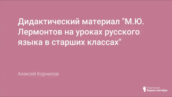 Дидактический материал осуществляет взаимосвязь уроков русского языка и литературы. Комплексный анализ текстов помогает учащимся лучше понять стилистические, лексические, синтаксические особенности лермонтовской прозы. Одновременно материал повторяет курс русского языка и готовит к ЕГЭ.