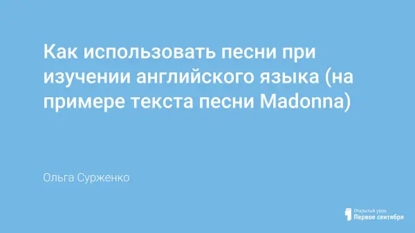Существует самый приятный способ обучения иностранному языку через музыку, точнее, песни, который называется SongWay (от английского - песенный способ). У нас, у учителей, для подготовки к уроку есть огромная возможность выбрать исполнителя, который нам нравится, и это уже интересно. Выбирать желательно, конечно, из тех, у кого достаточно чёткое произношение, текст содержит употребляемую в обычной жизни лексику, без «выкрутасов» и жаргона, без поэтических излишеств.
