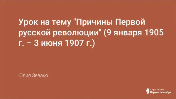 Урок включает в себя поэтапное раскрытие сущностных черт и причин возникновения и развития Первой русской революции. Использует средства визуально-эмоционального воздействия, работу с документами и схемами.