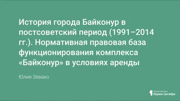 Урок формирует знания и представления о истории города Байконур и нормативных правовых основах его функционирования в условиях аренды. Урок – один из серии уроков, посвященных истории, традициям и быту представителей разных народов в городе Байконур и собственно истории города Байконур.
