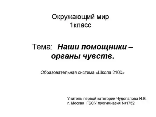 Урок дает представление о том, какие органы чувств помогают человеку познать окружающий мир.