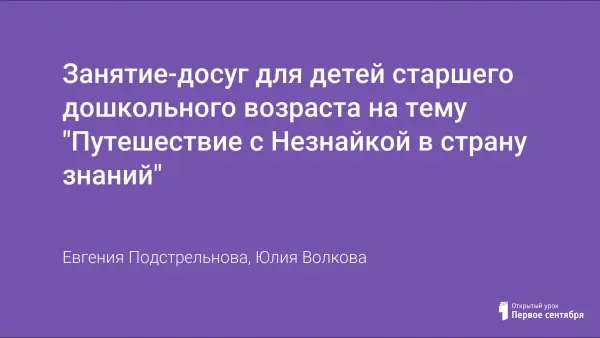 Занятие-досуг для детей старшего дошкольного возраста на тему "Путешествие с Незнайкой в страну знаний"