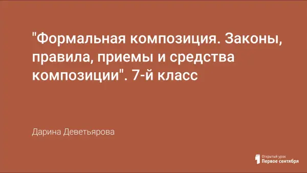 Пролонгированный урок по теме изучает основы композиции. Знание основ композиции формирует элементарную грамотность восприятия произведений искусства, развивает творческие способности школьников.