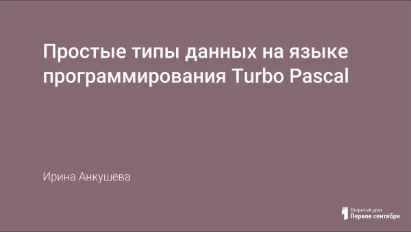 Основная цель урока: дать основные сведения о переменных, константах, описания типов на языке программирования Turbo Pascal.