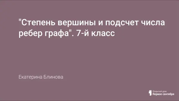 Цель урока: закрепить понятие "граф", сформировать представление о степени вершины графа (четная, нечетная вершины), определение связности графа, рассмотреть утверждение о количестве ребер графа и теорему о четности числа нечетных вершин графа; отработать навыки использования теоретических знаний для решения новых задач.