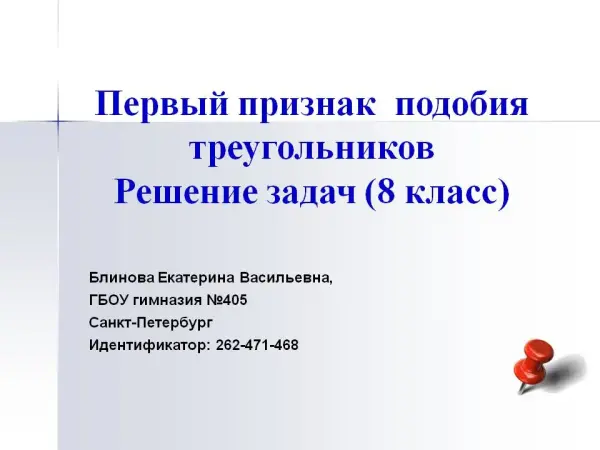 Урок обобщает и систематизирует знания по теме, проверяет знания теоретического материала и отрабатывает навыки решения задач на применение первого признака подобия треугольников. Мы уже знаем, что в геометрии фигуры одинаковой формы принято называть подобными. На уроке рассмотрены задачи в рисунках на подобие треугольников.