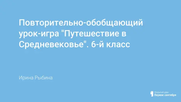 Урок-игра «Путешествие в Средневековье» обобщает курс истории Средних веков. В форме игры дети смогут оживить свои знания и подготовиться к итоговой контрольной работе по курсу. Урок сопровождается презентацией, повышает интерес к занятию и оставит много впечатлений.