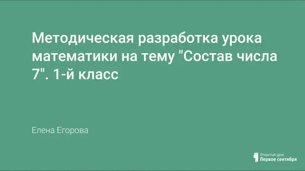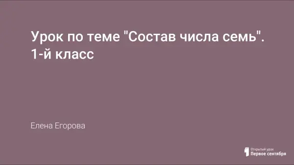 Урок математики в 1-м классе знакомит учащихся с составом числа семь. Входе урока ученики составляют равенства, иллюстрирующие возможности получения числа 7; учатся применять термины, связанные с действием сложения; дополнять схему изменения объекта.