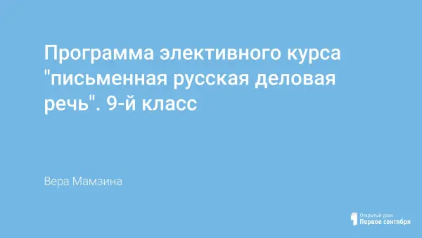 Элективный курс «Письменная русская деловая речь» способствует совершенствованию устной и письменной речи в целом и письменной русской речи делового стиля в частности, формированию орфоэпических орфографических и пунктуационных навыков русской речи в процессе составления текстов деловых бумаг, углублению знаний об официально-деловом стиле, привитию интереса к изучению текстов официально-делового стиля речи.