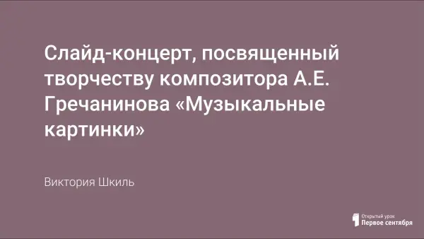 Творчество А.Т. Гречанинова по программе курса музыкальной литературы и слушания музыки не изучается. Репертуар произведений объемный. Мероприятие знакомит с творческим наследием композитора и биографическими данными.