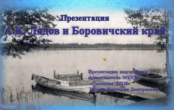 Анатолий Константинович Лядов (1855–1914) – выдающийся русский композитор уникального стиля и мастерства, мастер миниатюры, представитель уникальной в своём роде музыкальной династии Лядовых. Жизнь и творчество которого тесно связаны с Боровическим краем. Современники назвали его "пророком чистой красоты, поборником музыкального просвещения на Руси".