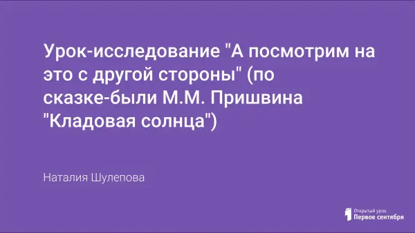 Этот урок является третьим из четырёх в изучении сказки-были М.М.Пришвина «Кладовая солнца» (6 класс, по программе В.Я.Коровиной)). Урок помогает изучить новый материал на высоком уровне, когда художественный текст не просто воспринимается учащимися, а становится для них самостоятельно добытым знанием.
