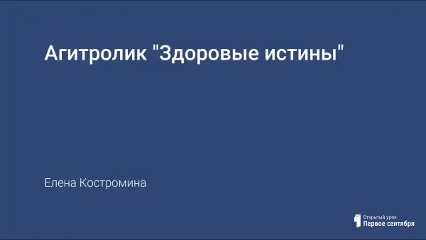 Важнейшее направление воспитательной работы в школе – формирование у школьников здорового образа жизни. Как привить детям тягу к физкультуре и спорту, активному отдыху, рациональному питанию, соблюдению правил гигиены? В статье представлен сценарий агитролика «Здоровые истины», главная цель которого - формирование здорового образа жизни.