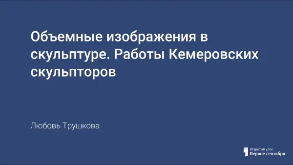 Урок-путешествие в прошлое и настоящие в развитии скульптуры Кузбасса. Урок является частью регионального компонента, целью которого является формирование у школьников системы взглядов, принципов и норм поведения в отношении окружающей их среды, способствует воспитанию чувства патриотизма и любви к родному краю.