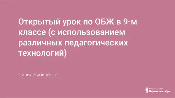 Открытый урок по ОБЖ в 9-м классе с применением технологии проблемного обучения (обучающиеся сталкиваются с необходимостью использовать ранее усвоенные знания в новых практических условиях); технологии критического мышления (обучение самостоятельно мыслить, структурировать и передавать информацию); групповых технологий (значительное увеличение активности учебного процесса в результате кооперации и конкуренции при работе в малых группах).