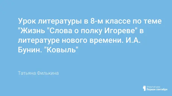Анализируя стихотворение И.Бунина «Ковыль» на фоне «Слова…», рассматривая иллюстрации к «Слову…» художника Ю.Селиверстова, в которых тоже совмещаются реальность и субъективные ощущения, учащиеся обнаруживают, что прошлое живет в настоящем, что память предков жива в современном человеке, и прочитывают стихотворение И.Бунина как проникновенное раздумье о будущем России.