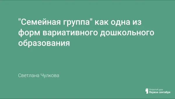 «Семейная группа» – новая форма дошкольного образования на базе государственных образовательных учреждений. Подходы к образовательному процессу в семейной группе отражают ценностные ориентиры семьи, общества, государства и учитывают возрастные и индивидуальные особенности детей.