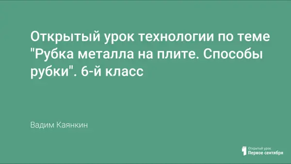 Открытый урок технологии по теме "Рубка металла на плите. Способы рубки". 6-й класс