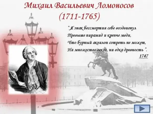 Цель урока: развитие познавательного интереса к биографии и творчеству М.В. Ломоносова; размышление о роли знаний в жизни человека; развитие творческих способностей учащихся.