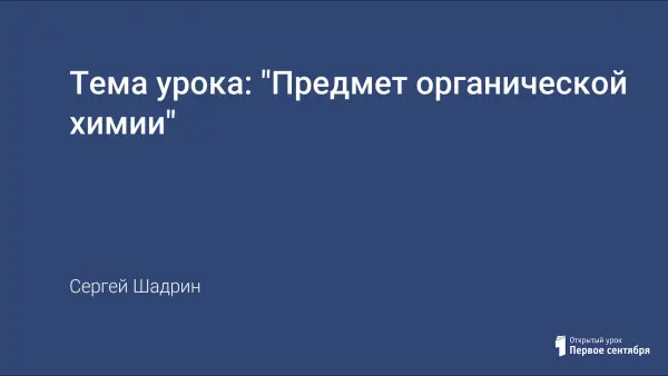 На уроке раскрываются понятия: предмет органической химии, показываются особенности органических веществ в сравнении с неорганическими, раскрываются основные положения теории строения органических соединений А.М. Бутлерова, сравнивается значение органической химии для теории периодичности Д.И. Менделеева неорганической химии.