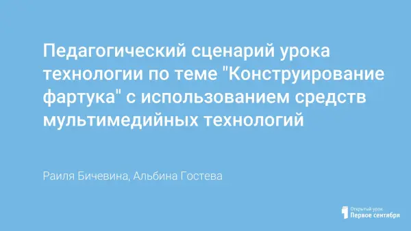 Педагогический сценарий урока технологии по теме "Конструирование фартука" с использованием средств мультимедийных технологий