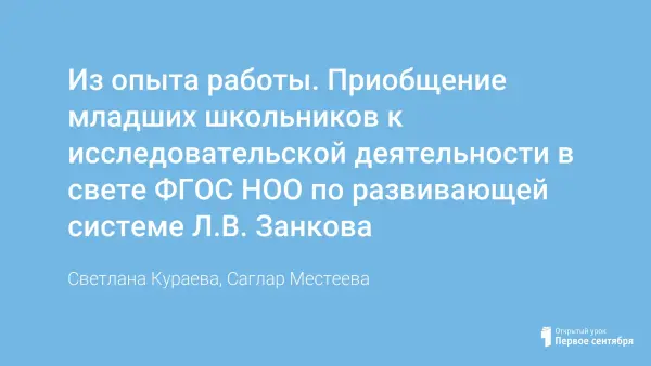 Из опыта работы. Приобщение младших школьников к исследовательской деятельности в свете ФГОС НОО по развивающей системе Л.В. Занкова