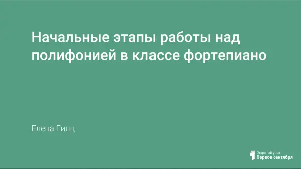 Статья представляет собой краткий обзор задач и содержания работы над полифонией на начальном этапе обучения в фортепианном классе ДМШ.