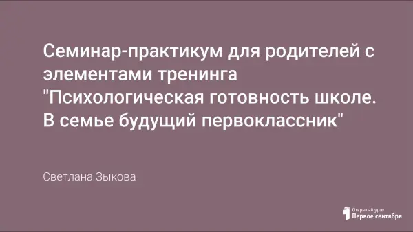 Семинар-практикум для родителей с элементами тренинга "Психологическая готовность школе. В семье будущий первоклассник"