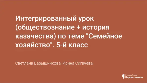 Интегрированный урок обществознания и истории казачества создаёт условия для формирования экономических представлений о правилах ведения современного домашнего хозяйства, с опорой на знания истории казачества, формирует уважительное, бережное отношение к семье, повышает значение семейного воспитания, учит бережливости.