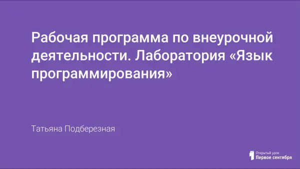 Предлагаемая программа Лаборатория «Язык программирования» предназначена для организации внеурочной деятельности по таким взаимосвязанным направлениям развития личности – общеинтеллектуальное и социальное. Программа предполагает ее реализацию во внеурочной деятельности в 7 и 8 классе основной школы. Целью настоящего курса является формирование алгоритмической культуры учащихся, развитие алгоритмического мышления, формирование практических навыков по реализации алгоритмов различных типов на языке Python.